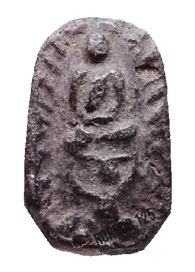 ๙. เหรียญหล่อรูปไข่ หลังมียันต์ (เนื้อทองเหลือง)